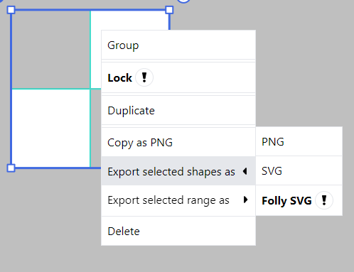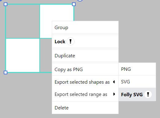 Only selected shapes will be exported when a menu within Export selected shapes as is activated.