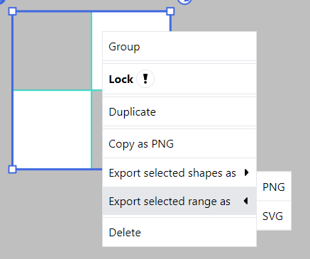 The range consists selected shapes will be exported when a menu within Export selected range as is activated.
