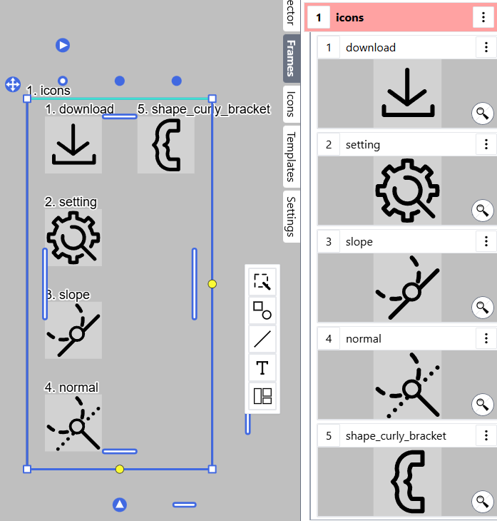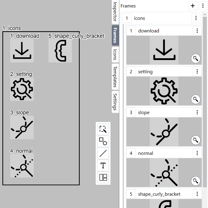 Frame shapes create sections in the canvas. Shapes on a frame shape are treated as if they were children of the frame shape without grouped.
