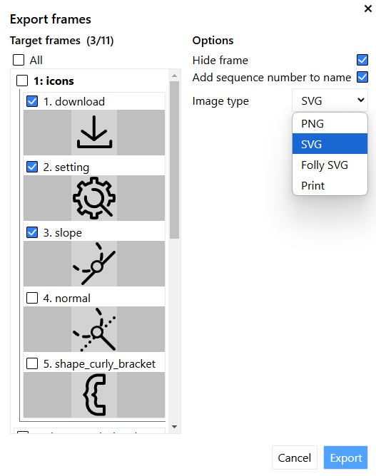 When multiple frames are exported as files, they are compressed as ZIP file.