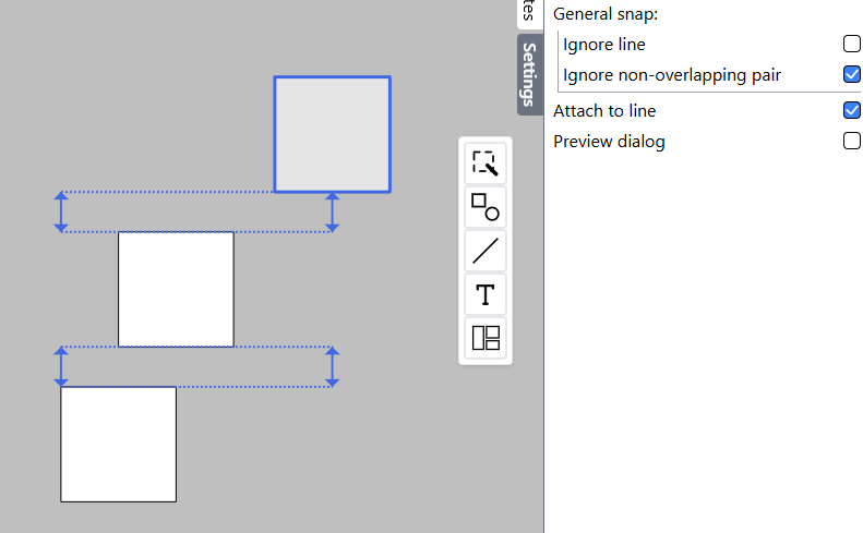 Paris of shapes within the viewport also generate snapping guidelines to align shapes evenly.
