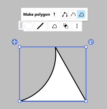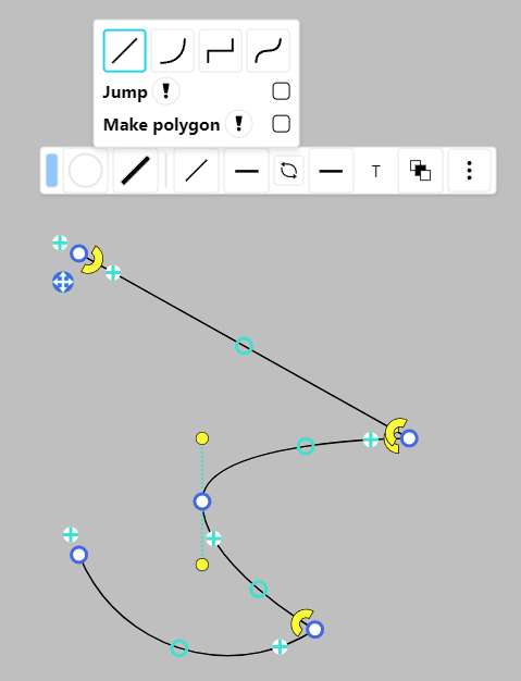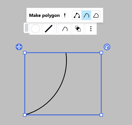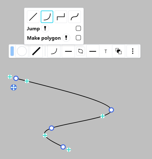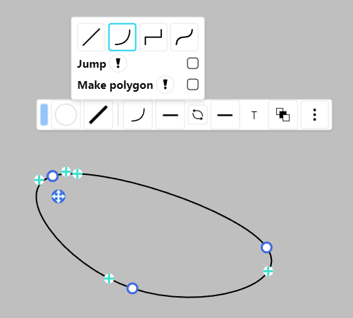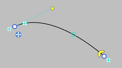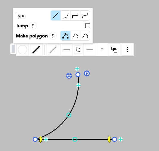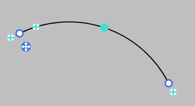 Create and modify a cubic bezier curve by dragging the anchors around the vertices. These anchors are hidden when the segment is an arc.