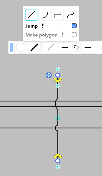 When this property is enabled, the line jumps over other backward lines. Jumping can only occur between straight segments.