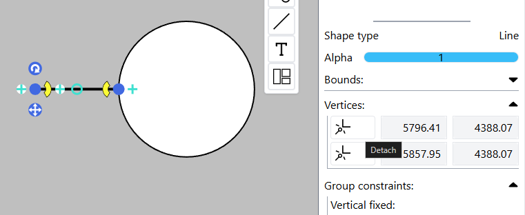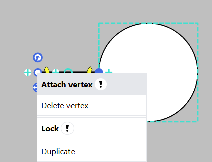 Each vertex of the line can be connected to other shape by moving it close to the outline or the center of the shape.